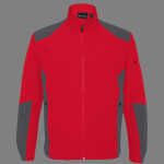 90% polyester/10% spandex soft shell jacket; Wind and water resistant; Performance fit with four-way stretch comfort; Elastic back cuff; Zippered hand and sleeve pockets.;